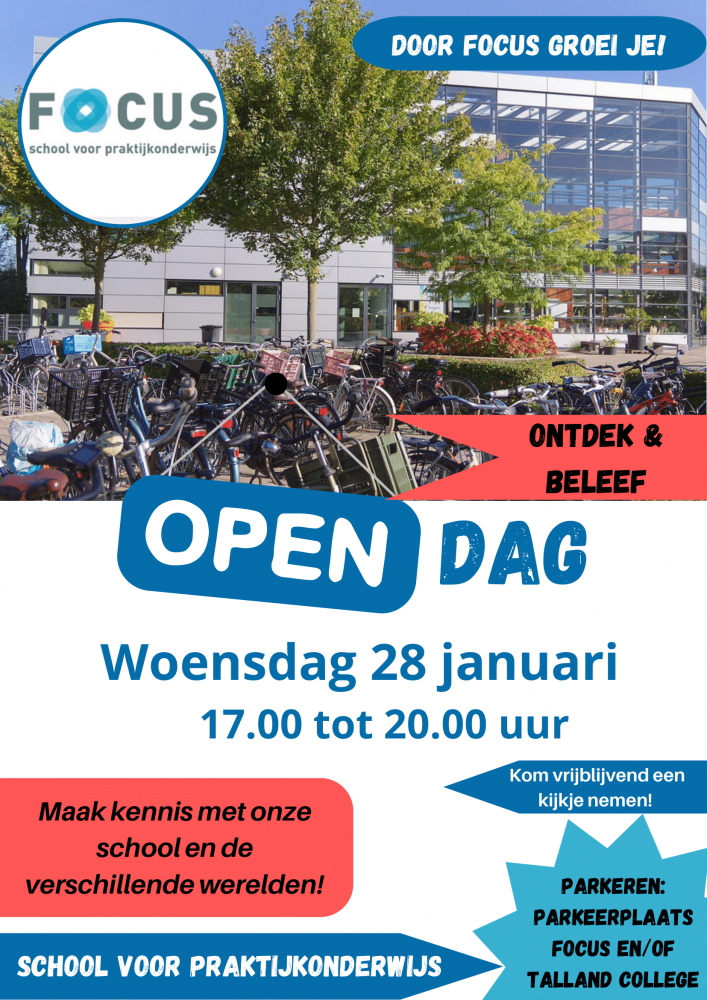 'Focus biedt onderwijs aan jongeren tussen de 12 en 18 jaar met leerachterstanden. Zij hebben o.a. moeite met leren op een traditionele manier. In het praktijkonderwijs leren de leerlingen niet alleen uit boeken en online, maar vooral om te doen. Het onderwijs richt zich met name op de praktische en sociale vaardigheden. In kleine groepen worden de leerlingen voorbereid op een goede toekomst. Zij krijgen les in rekenen, taal en Engels en verwerven kennis en vaardigheden gericht op de domeinen: Wonen, Werk, Vrije Tijd en Burgerschap. Het leren gebeurt zoveel mogelijk in de praktijk door training op school en door stages bij bedrijven en instellingen.'